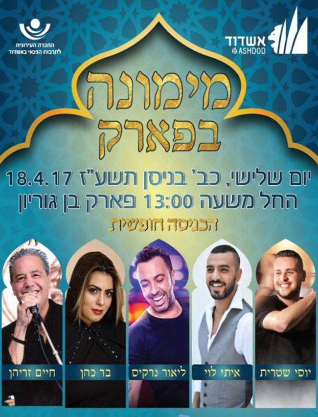 יום המימונה באשדוד הוא כבר מזמן לא רק לעדות המזרח, כל תושבי אשדוד נכל גווניה לוקחים חלק במופעי המימונה שהם פסטיבל ים תיכוני לכל דבר ועניין. הלוקיישן הקבוע נשאר כמו בכל שנה וגם פרוייקט הREWAY לא הזיז אותו מפארק בן גוריון, מה שהיה נהוג להשלים במשפט מול המשטרה כבר לא רלוונטי.