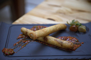 סיגר במילוי לוקוס – על רוטב צרמלה בליווי קונפי שום, שרי ושומר.