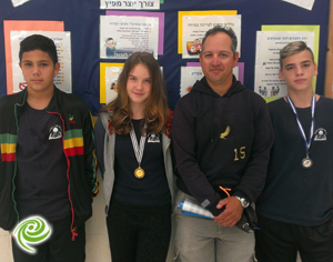 בתמונה: התלמידים הזוכים מבית ספר אלונים יחד עם המורה מהחינוך הימי.