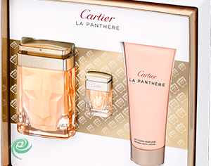 מארז CARTIER LA PANTHERE: דמות הפנתרה מתעוררת המיתוגלית של cartier מתעוררת לתחיה וזוכה סוף סוף לריח. ריח המוקדש כולו לחינניות האישה: שילוב של פרח ותחושה "פרח רך ממשפחת החתולים, עוטף ומלטף כמו פרווה" .