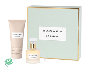 מארז: CARVEN: הצבע הירוק מסמל חופש, חיוניות, נשיות וכמובן את ניחוח האביב המתפרץ מהבושם. ההשראה הינה כפריט לבוש אוורירי ואביבי, עירוני ונוח, אשר הובילה לניחוח מרענן וקל על העור. הניחו מורכב מלימון איטלקי, אפונה ריחנית ופרח האדמונית, מאסק ואמבר ומעניק לו את הסיומת העשירה. מחיר 435 ₪.