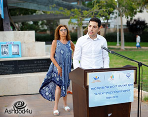 נאור ביטון, יועץ ראש העיר, נשא דברים בטקס. "אשדוד, העיר הרב-תרבותית של ישראל, התברכה בקהילה נהדרת של יוצאי-ארגנטינה ואמריקה הלטינית", אמר וציין כי "יחד אתכם חברי הקהילה, אנחנו מתאספים כאן בכל שנה לצד האנדרטה לזכר 85 הקורבנות, זוכרים ומזכירים לדורות הבאים את אשר קרה. העולם כולו יודע כי המשטר הדיקטטורי בטהרן וזרוע הטרור שלו חיזבאללה עמדו מאחורי המתקפה הנפשעת, אך עדיין לא הובאו האשמים לדין. על מדינת ישראל, הקהילה היהודית בארגנטינה וקהילת יוצאי-ארגנטינה בישראל לא להרפות מהנושא עד אשר הצדק ייעשה".