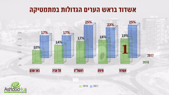 אשדוד יכולה להתגאות בנתון נוסף והיא עומדת מעל הממוצע הארצי שעומד על 15%.