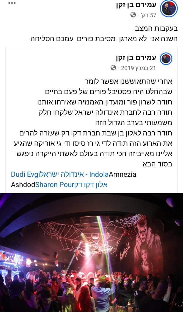 לאחר הודעת ביטול על מסיבת מסיבת הפורים המסורתית של מירב בנישו דרך ארליך, גם עמירם בן זקן בוחר להודיע על ביטול שכבר התבשל אצלו עם התחושות הכלליות של המלחמה, כמו רבים אחרים.