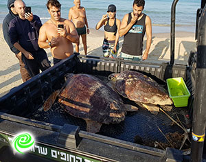 המצילים יצרו מיד קשר עם החברה להגנת הטבע שהגיעו במהירות לחוף ויחד עם המצילים העלו את הצבים לרכב יעודי ולקחו אותם לטיפול באחת המרפאות של החברה.