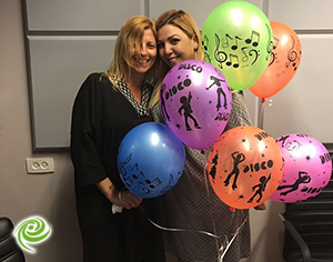 באולפן חיכו לה הפתעות מפנקות מ"הילה אופה מאהבה" ו"עופר אמן הבלונים" שקישט את האולפן בשלל בלונים.