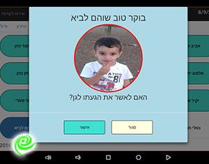 בלחיצה על צג המסך, מעדכנים ההורים על הגעת ילדם לגן. במידה ולא התקבל עדכון שכזה, יקבלו ההורים הודעות טקסט, המאפשרות להם לאשר כי הם מודעים לכך שילדם טרם הגיע לגן. במידה ולא ישיבו בפרק זמן של חמש דקות יישלח מסרון נוסף אל מספר חירום, אשר הוגדר במערכת קרי: סבתא/סבא, דוד/ה וכיו"ב. כמו כן, יוכלו ההורים לעדכן על אי הגעת ילדם לגן, מכל סיבה שהיא (חופשה, מחלה וכד'), על ידי שליחת מסרון למערכת. התקנת המערכת כרוכה בתשלום חד פעמי נמוך ובתוספת ממוצעת בסך של ששה שקלים לילד, לחודש.