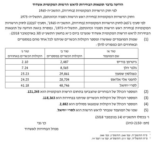 אומרים תמיד שבחירות לא מסתיימות עד שמגיע האישור הרשמי ממשרד הפנים, הבוקר התבשר ראש עיריית אשדוד על זכייתו הרשמית, לא שהוא חשש אבל תמיד עדיף שהתוצאות רשמיות ומאושרות סופית ע״י משרד הפנים.