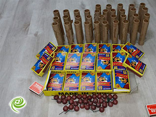 בתמונה: הנפצים והחזיזים שנתפסו והוחרמו ע"י השיטור המשולב.