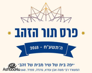 טקס הענקת פרס תור הזהב במעמד ראש העיר אשדוד, ד"ר יחיאל לסרי, יתקיים במסגרת פסטיבל תור הזהב, ביום רביעי, 4.4.18, חוה"מ פסח, בשעה 18:00, אודיטוריום מונארט, אשדוד.
