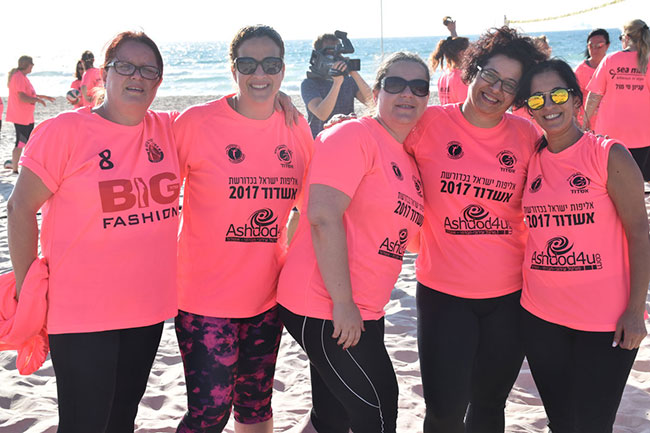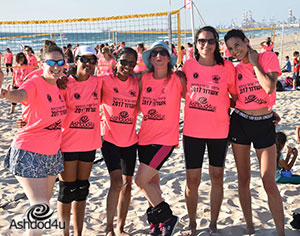 פורטל האינטרנט אשדוד פור-יו וקניון סימול הם נותני החסות שדאגו לצבוע את החוף בחולצות ורודות אחידות.