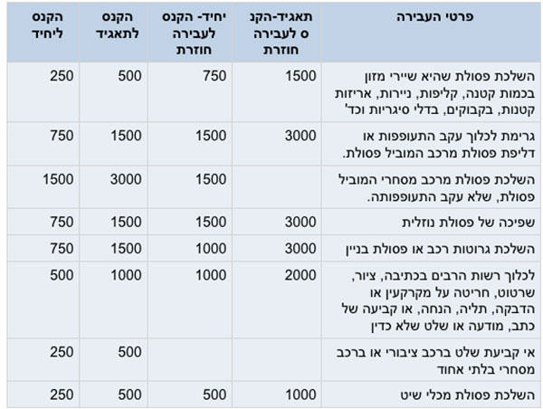 בתוך כך מציינים בעירייה את הקנסות על מגוון עבירות במסגרת חוק מדינה לשמירת הניקיון, הנעים בין 750-250 ₪ ליחיד ועד 750-1500 ₪ לתאגיד (מצ"ב טבלה). עוד אומרים בעירייה כי לפעילותם של נאמני ניקיון יש יתרון כפול: הקנסות הנגבים מופקדים ב"קרן לשמירת הניקיון" הפועלת לקידום מהפכת המחזור לצד נושאים סביבתיים בסיסיים ולקידום החינוך הסביבתי, לטובת הציבור בכל רחבי הארץ.