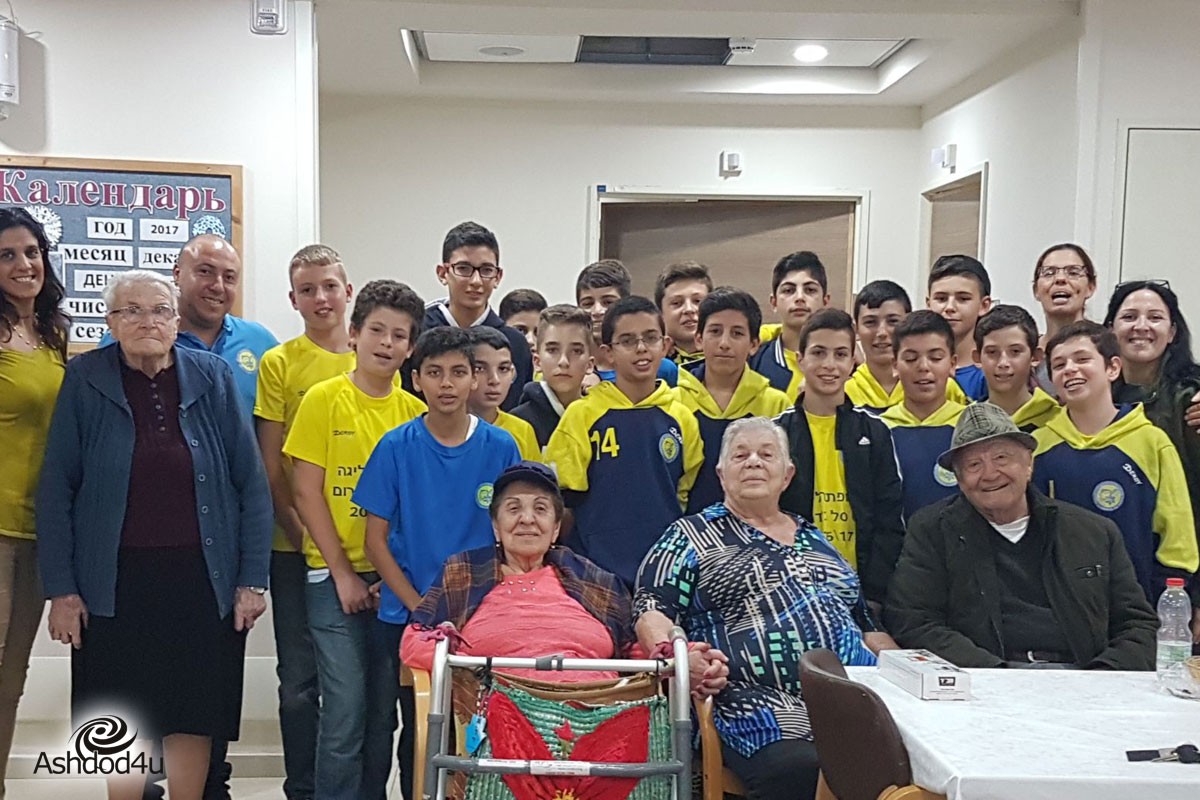 כבר בכניסה התקבלו הילדים במחיאות כפיים ובצהלה ע"י הקשישים הנפלאים. ילדי אגודת מכבי אשדוד שיחקו, פיטפטו,צחקו והרגישו כבר מהרגע הראשון חיבור נפלא עם קשישי בית האבות. כאשר מוישה בן ה 90 הדליק את החנוכיה וילדי האגודה שרו עימו "על הניסים", העיניים של כולם נצצו מהתרגשות.