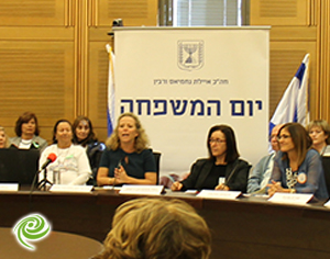 בתמונה: על בימת הכנסת במליאה, הכריזו ח"כ איילת נחמיאס ורבין, אשר הובילה במקצועיות ובנמרצות את יום המשפחה וח"כ רחל סעדה, יושבת ראש הוועדה לשלום הילד, כי אשדוד מהווה מודל ויש לפעול להקמת מרכזים בכל הארץ.