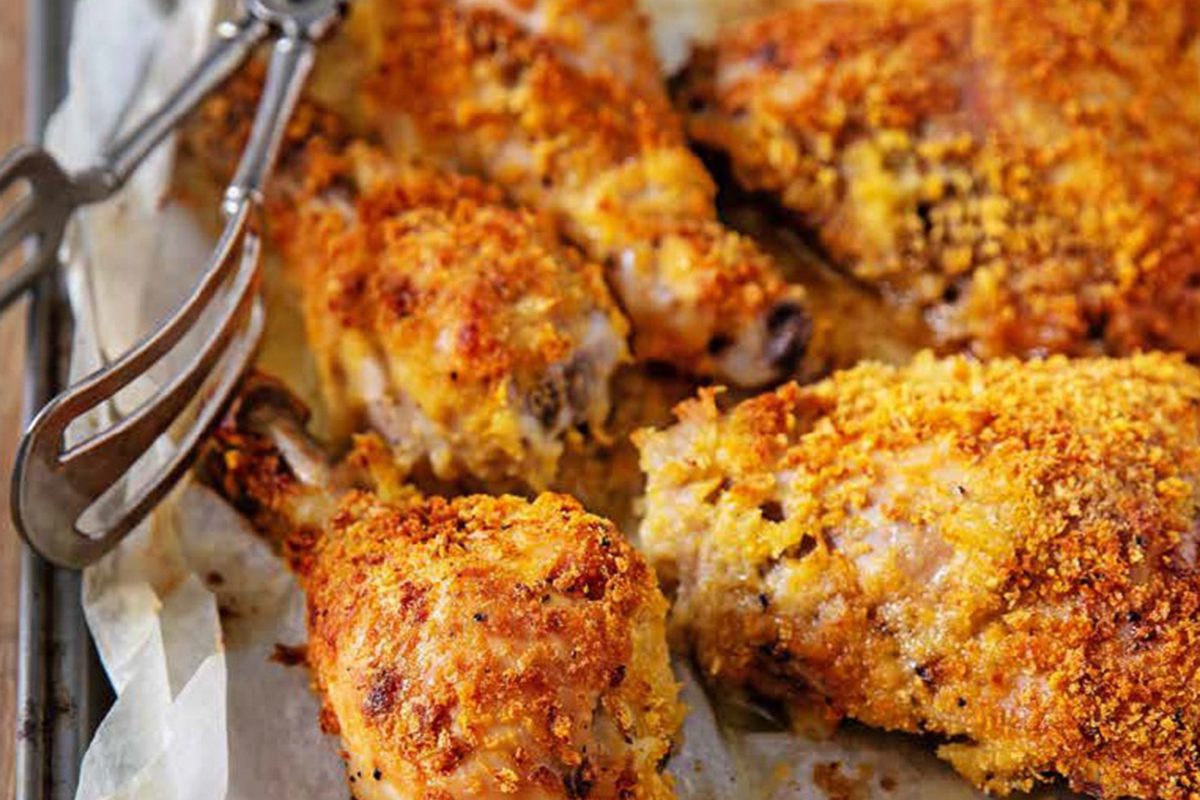 - מורחים את כרעי העוף במיונז קל. מכניסים אותן לשקית צלייה עם פירורי הלחם והתבלינים. סוגרים את השקית ומנערים עד שחלקי העוף מכוסים כולם בציפוי. אופים בתנור החם כשעה וחצי, עד שהעוף פריך.