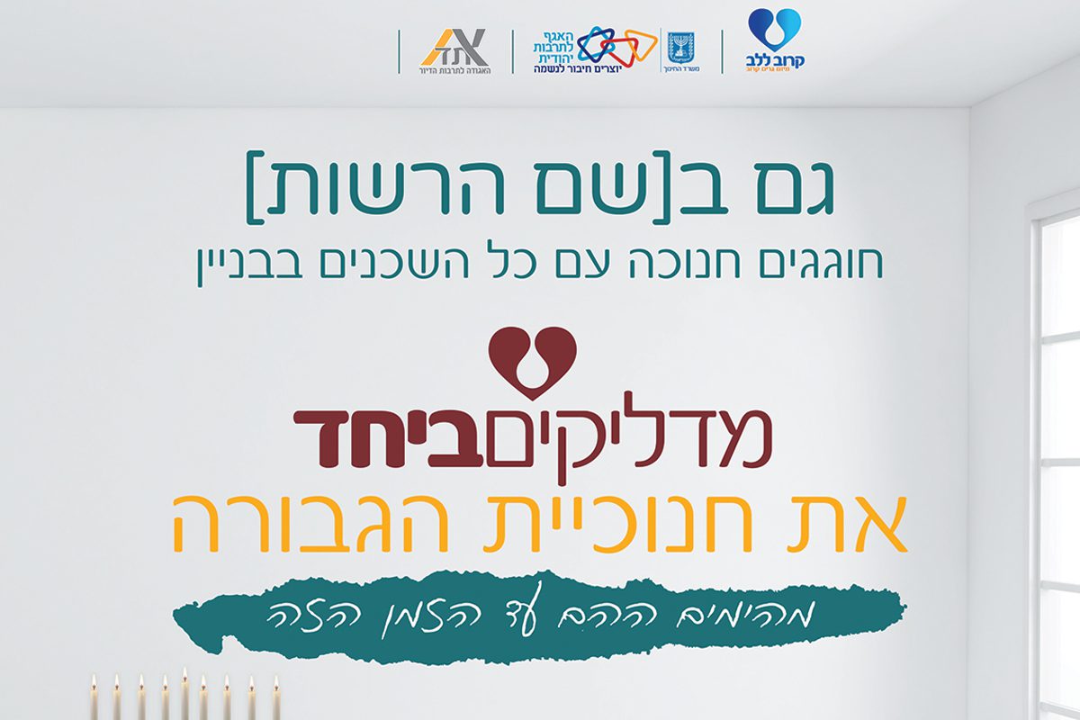 קול הקורא מזמין את כל השכנים בבניין משותף לחגוג יחד את החג בהדלקת נרות חנוכה תחת הסלוגן "מדליקים ביחד את חנוכיית הגבורה", ולהפוך את האירוע לחוויה חברתית מהנה ומגבשת.