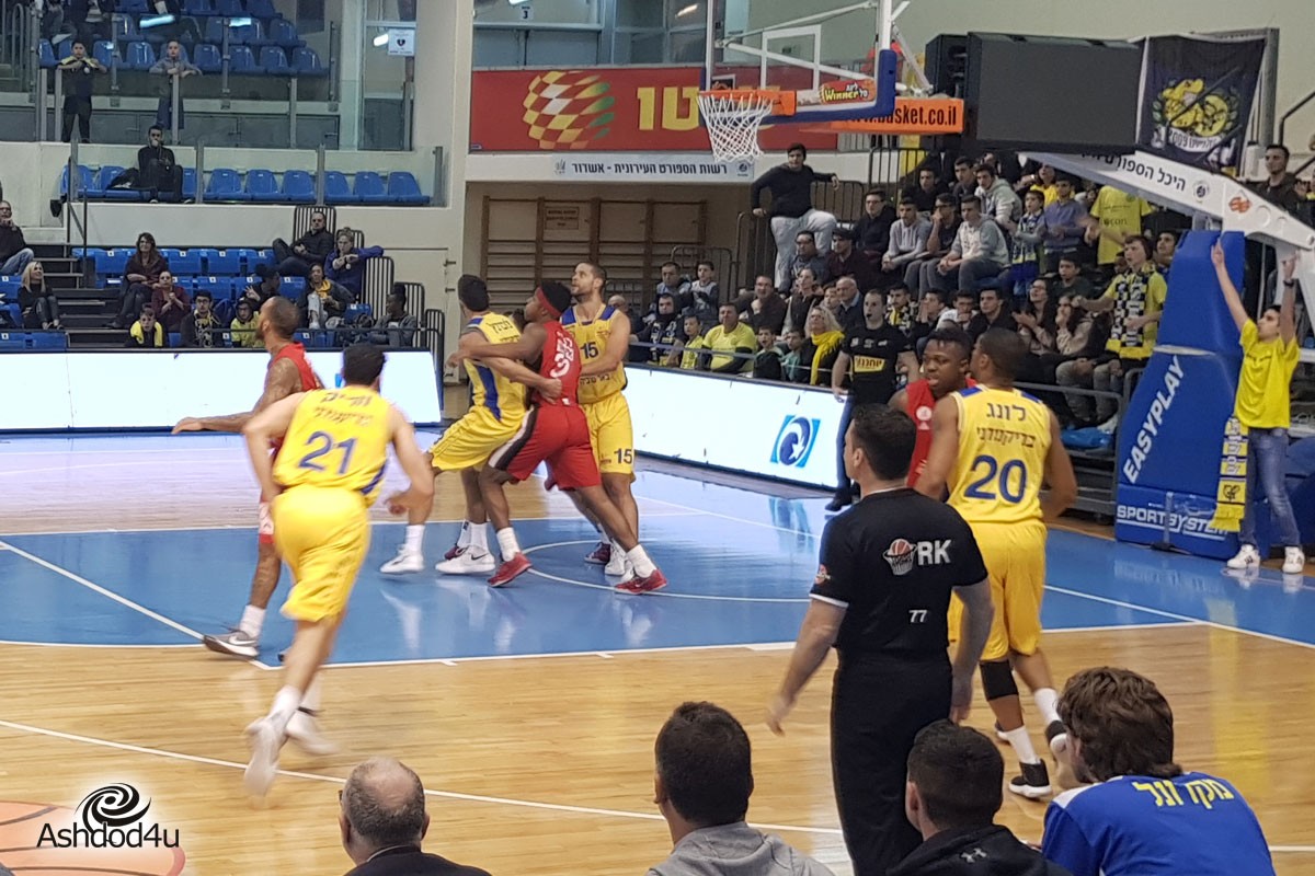 לאחר רבע ראשון צמוד שהסתיים ביתרון מינימלי 18-17 של האורחים מהגלבוע, הצהובים מאשדוד החלו בתנופה, ויחד עם הקהל המדהים שלא הפסיק לעודד לרגע, הובילו כבר ביתרון דו-ספרתי בהפסקה, 43-29, כשנמרוד לוי וקמרון לונג מנגנים על המקהלה.