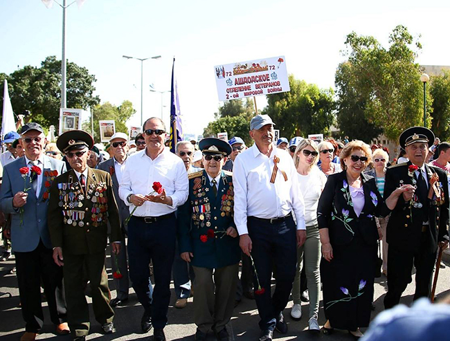 האירוע המרכזי, "מצעד הווטרנים", התקיים אתמול (8 במאי) לאורך שדרות וייצמן ולאחריו התכנסו כולם על מדשאת פארק בן גוריון לטקס ולפעילות משותפת. כתף אל כתף צעדו נציגים ארגונים ציבוריים של ווטרנים, נכי המלחמה, אסירים לשעבר בגטאות ובמחנות ריכוז, ניצולי המצור על לנינגרד, ארגון "ילדי השואה", משתתפי היוזמה הציבורית בשם "גדוד האלמותי" ובני נוער: תלמידי בית הספר "אורט", בית הספר "לקט" (מנהלת פירה גרינס), להקת ילדי "קשת" (מנהלת אירינה מטוחנוב) ותושבים רבים. "בסך הכול, כאלפיים תושבי העיר ואורחים יצאו לחגוג את החג הגדול הזה – חג הניצחון על הנאצים" אומרים במחלקת הקליטה.