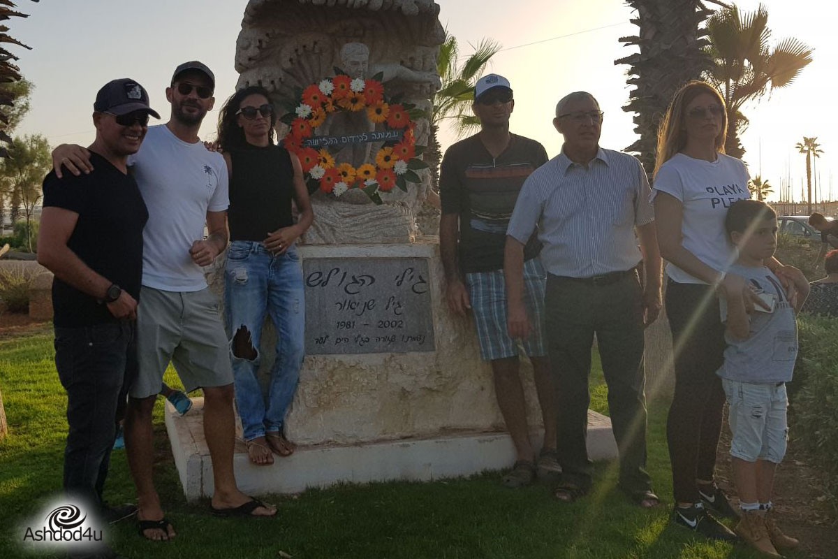 לאחר מכן הגיעו הקרובים לטקס הפרטי על באנדרטת הפסל הנמצאת לא רחוק מהחוף הנושא את שמו של גילי שניאור ז״ל – ״חוף גיל״.