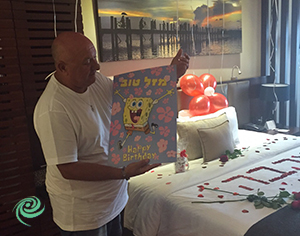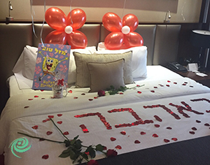 כשחתן השמחה נכנס אל החדר הוא גילה שהחגיגה ממשיכה עם שלל פינוקים. את הפינאלה של החגיגות הם עשו בשבת כשיצאו לטיול בקיסריה, כיאה למעמד.