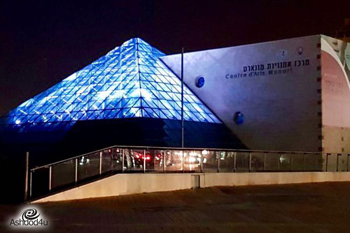 החל מהערב, נר ראשון של חנוכה תואר הפירמידה במוזיאון אשדוד לאמנות, מידי ערב בצבע אחר. הנר הראשון הביא את הפירמידה להיות מוארת בצבע כחול… ומחר… אין מה לעשות תיאלצו לחכות למחר 🙂