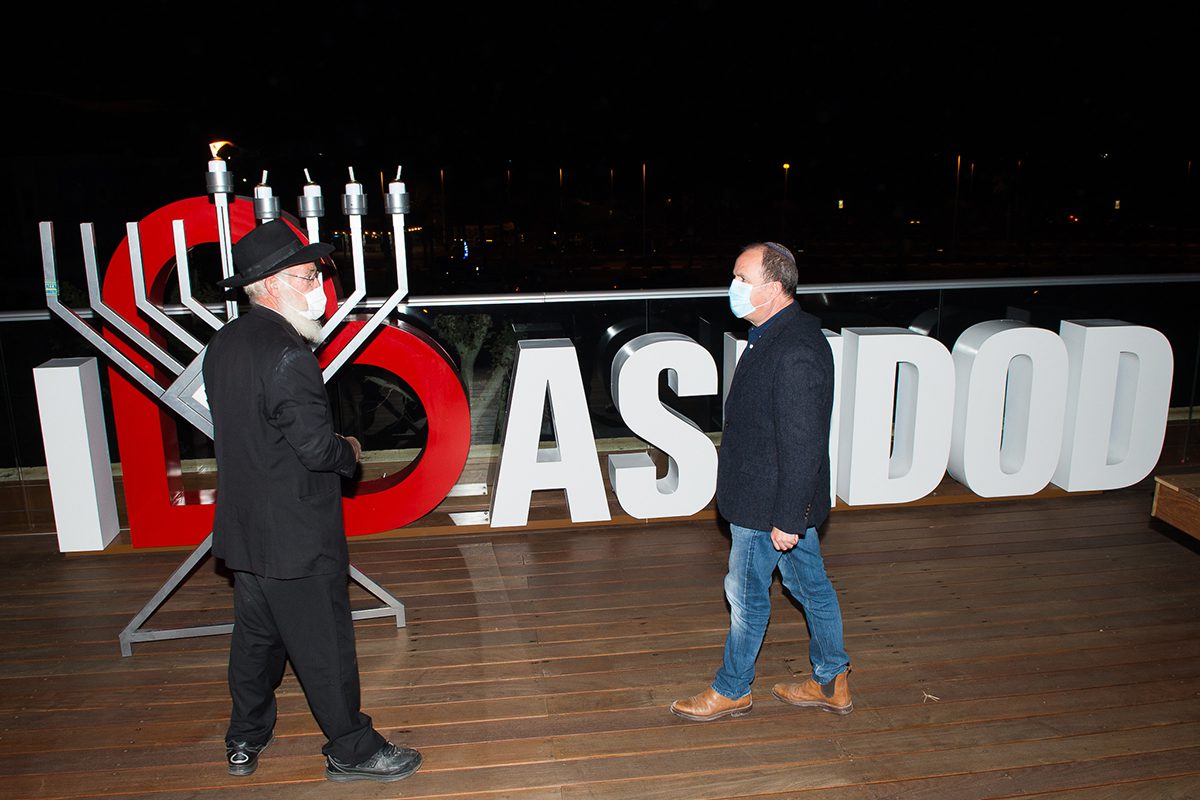 ראש העיר ד"ר יחיאל לסרי הדליק אמש נר רביעי של חנוכה יחד עם הרב שניאור זלמן גודמן, ראשון שליחי חב"ד באשדוד. האירוע התקיים בפארק אשדוד ים, בחנוכיה שהוצבה ליד המונומנט החדש (I LOVE ASHDOD), המכריז על אשדוד כעיר אהובה על תושביה. חנוכיות רבות של חב"ד מפוזרות בעיר ואחת מהן דולקת במנורות לד. חג אורים שמח.