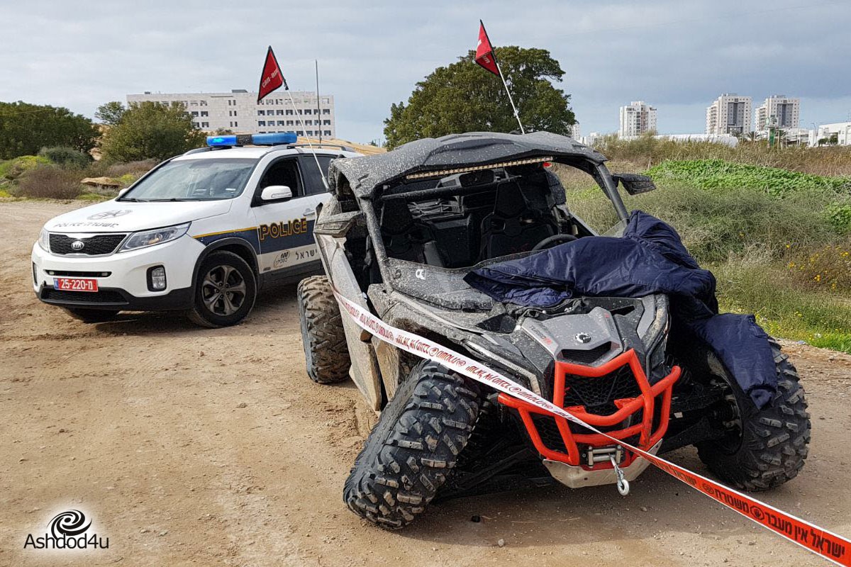 לפני כמחצית השעה התקבל דיווח על אודות תאונת דרכים בדיונה באשדוד בה מעורבים אופנוע שטח וטרקטורון (רייזר). כתוצאה מהתאונה נפגע רוכב האופנוע, צעיר בשנות ה-20, באורח אנוש ולפני זמן קצר נפטר מפצעיו. כוחות משטרה במקום ובוחן תאונות דרכים לכיש בדרכו לזירה לחקירת נסיבות התאונה.