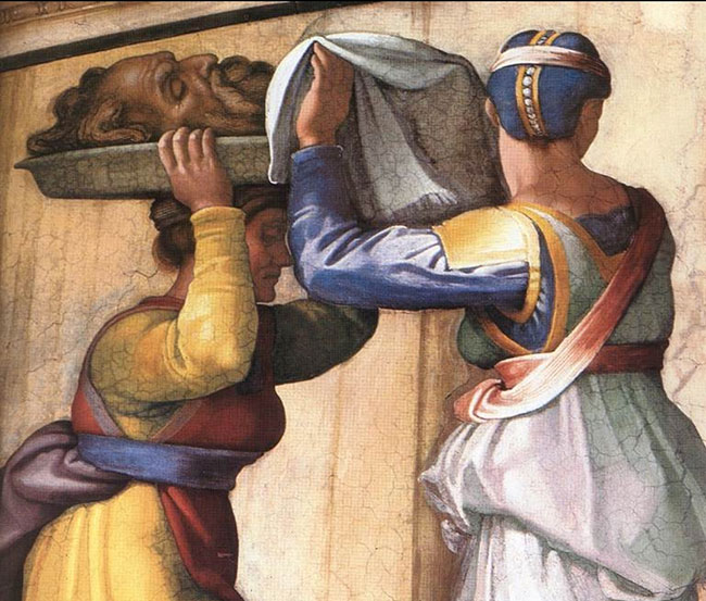 יהודית עם הראש של הולופרנס על מגש על ראש של שותפה למעשה, לפי מיכאלאנג'לו