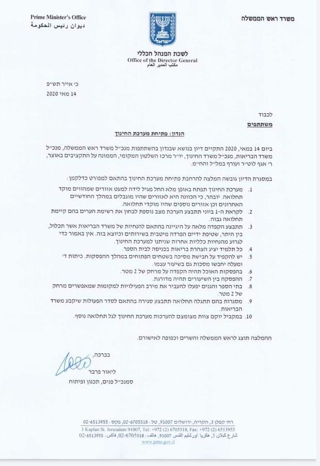 - בתי הספר והגנים יפעלו להעביר את מירב הפעילויות למקומות שמאפשרים מרחק של 2 מטר.