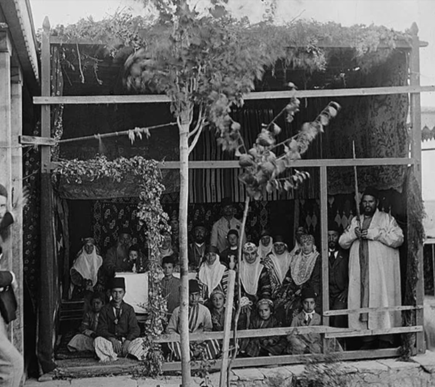 תמונה של יהודים כורדים חוגגים סוכות בתחילת המאה ה-20 (תמונה מהחוג להיסטוריה של אוניברסיטת תל אביב, עמוד פייסבוק ציבורי).