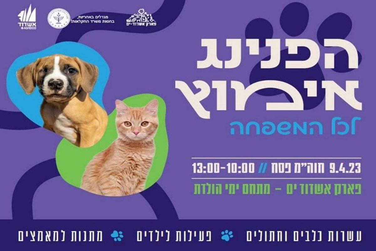 תהליך אימוץ כלב מהכלבייה העירונית באשדוד נעשה אל מול כל בני הבית, תוך הפנמה והבנה כי מדובר באימוץ אחראי וארוך טווח, בחסות משרד החקלאות. אשדוד מזמינה אתכם להפנינג אימוץ אזורי שייערך בפארק אשדוד-ים, בחול המועד פסח, 9.4.2023, בין השעות 10:00-13:00. בהפנינג ישתתפו כלבים וחתולים ממספר כלביות והסגרים עירוניים מכלל חלקי הארץ. שאלות ניתן להפנות לכלבייה עירונית בטלפון 08-9238512 / מסנג'ר פייסבוק "כלבייה עירונית אשדוד". כתובת הכלבייה: העופרת 10, אשדוד.