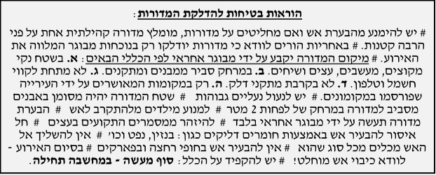 "הפיקוח העירוני ואנשי השיטור העירוני יפעלו כדי למנוע הדלקת מדורות בפארקים, בטיילות ובגנים העירוניים, בחצרות בתים ובשטחים השייכים למוסדות ציבור וחינוך, וגופי האכיפה יקפידו לשמור על הסדר הציבורי וקיום הנחיות הקורונה" אומרים בעירייה ומצרפים דף כללים והנחיות להתנהגות נכונה בל"ג בעומר.