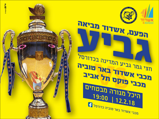 הערב ( שני,18:45) יגיע לו הרגע הראשון הגדול העונה של מכבי אשדוד\באר טוביה. הצהובים של בראד גרינברג יעלו על הפרקט באולם "מנורה-מבטחים" כדי לנסות ולנצח במעמד חצי גמר הגביע, את זוללת התארים הגדולה ביותר של מדינת ישראל, מכבי תל אביב.