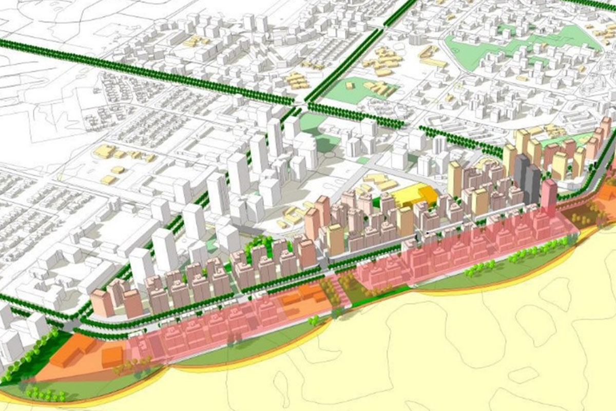 להמחשת העניין, מצ"ב הדמיה של התוכנית המוצעת על ידי עיריית אשדוד כאשר הבנייה אליה מתנגדים הגופים הסביבתיים, מסומנת בה בצבע ורוד.