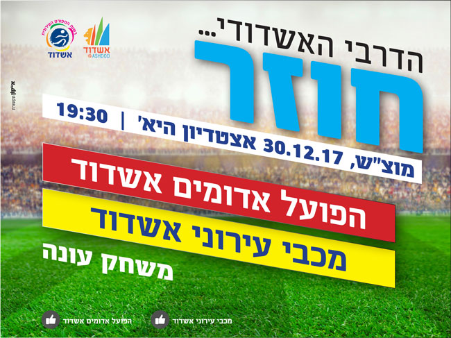 עוד שמונה ימים זה קורה, במוצאי השבת הבאה (19:30), תעצור העיר אשדו מלכת, כשהדרבי הגדול של ליגה ב', בין קבוצות האוהדים של מכבי עירוני והפועל אדומים אשדוד, ייפגשו ראש בראש על המאבק לפסגת הליגה.