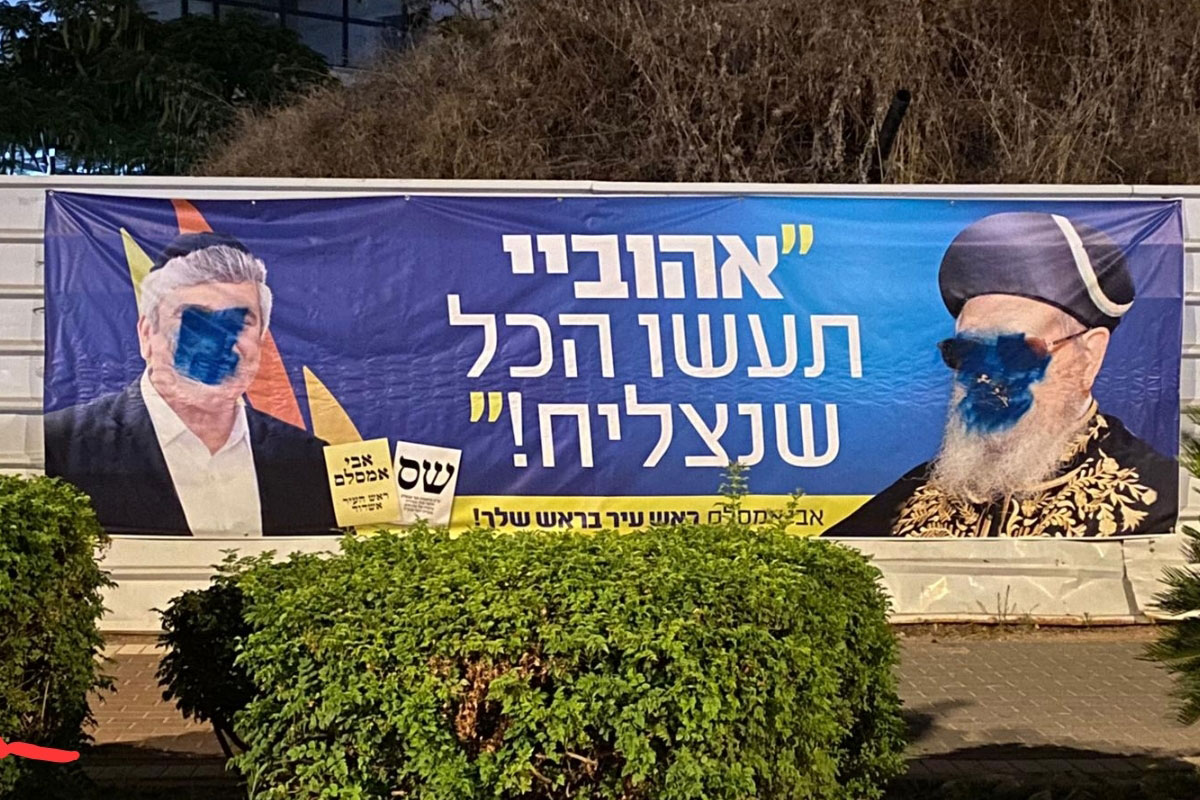 זעזוע כבד במחנה ש״ס עקב ריסוס שלט הבחירות של אבי אמסלם לצידו של המר״ן עובדיה יוסף, ההלם הגדול שמישהו העז להשחית את פני המר״ן עובדיה יוסף היתה הפתעה כואבת. כח הכבידה של שנאת החינם מושך אוטומטית למטה ואת זה חייבים להבין כלל המתמודדים.