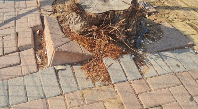 לא מדובר בעץ אחד אלא ב-90% אחוז מהנטיעות של העצים אינו מותאם לריצוף בגלל השורשים שגדלו והפכו את כל הריצוף לגובה לא הגיוני המהווה מכשול גם בהליכה רגילה, כך לאורך כל המסלול מכיוון צפון.