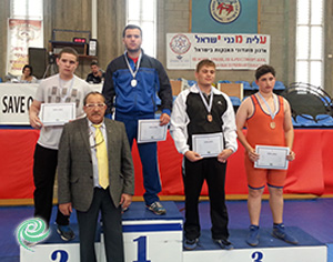 בתמונה על הפודיום: במקום הראשון לבקובסקי דוד והמאמן קום לב.