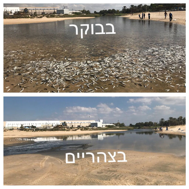 עיריית אשדוד ביחד עם המשרד לאיכות הסביבה ואיגוד ערים נמצאים במקום במטרה לבצע טיפול ראשוני הכולל פינוי של הדגים. כמו כן, אנו מבצעים דיגום של החומר שנשפך לנחל במטרה לנסות ולהתחכות אחר הגורם המזהם".