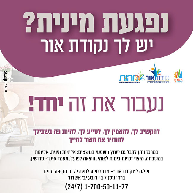 המרכז לנפגעי ונפגעות תקיפות מיניות באשדוד "נקודת אור" פועל במסגרת מהות הרשות העירונית לביטחון וחוסן קהילתי.