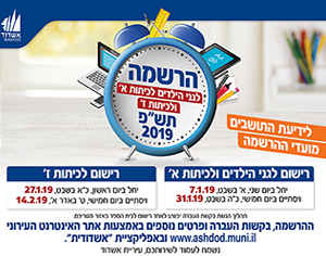 כל הפרטים בהודעה מופיעים גם באתר העירוני, בכתובת www.ashdod.muni.il. בהצלחה לנרשמים.