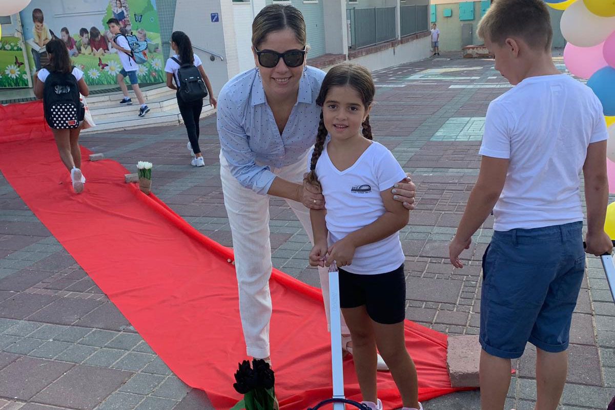 תפסנו אותה רגע לפני הכניסה לשטיח האדום בבית ספר אופק ברובע טו׳, רגע מרגש שכל הורה חווה בכניסת ילדיו לכיתה א׳.