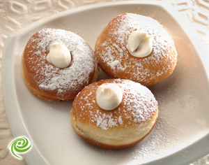 מפזרים על הסופגניות אבקת סוכר ומגישים.