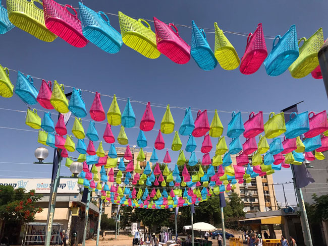 מאות סלי פלסטיק, כאלה שלפני 30 שנה היו הולכים איתם לקניות, רק צבעוניים ומאירי עיניים נתלו מעל רחבת המרכזון, האירוע האחרון שקרה ברחבה הזו קרה לפני 35 שנה בטקס ההשקה של ה״מטרו מרקט״ ברובע ו׳ (בדיחה לותיקים בלבד).