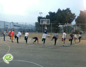 בתמונה: השחקן קלי קרטיס מאמן את חניכי פרויקט משאלה חווייתית ואגף הנוער במתנ"ס "חרצית".