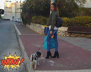 סנדרה סניגר בטיול יומי עם הכלב החמוד שלה. חברו הטוב של … סנדרה