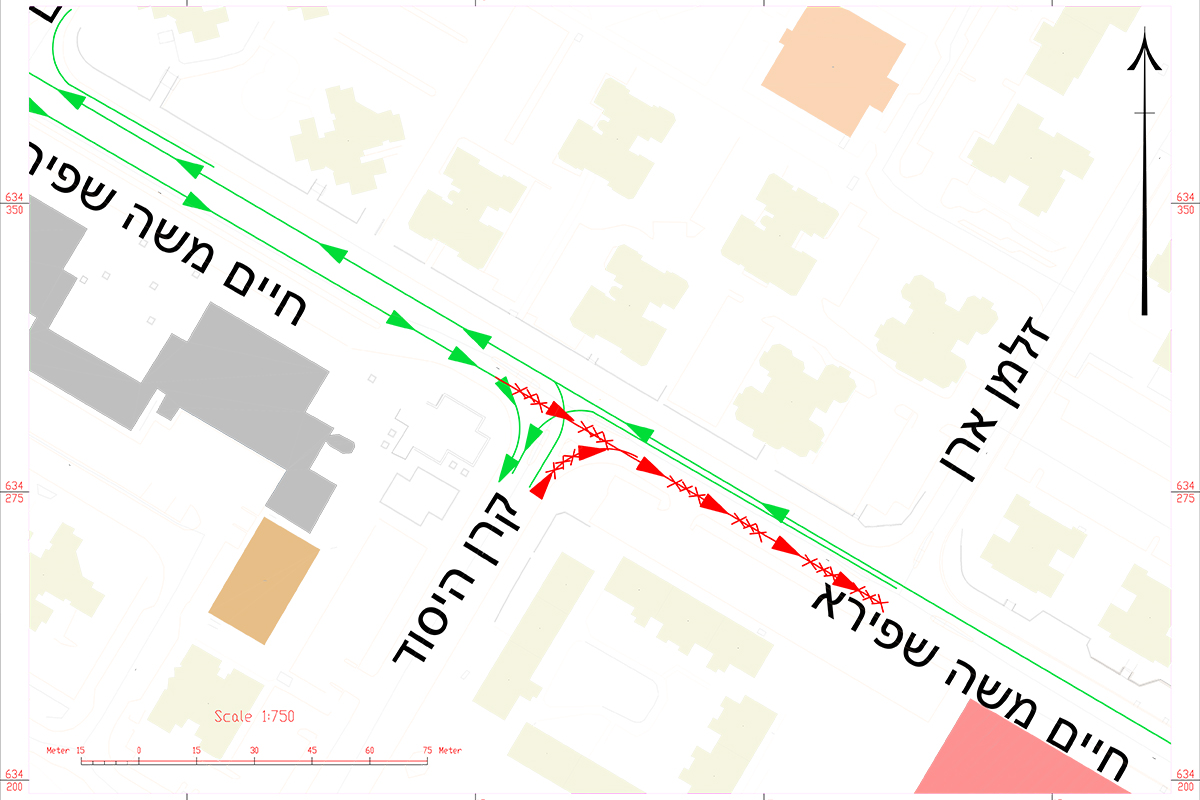 - לבאים מרחוב קרן היסוד שמאלה – תתאפשר יציאה לכיוון חיים משה שפירא מערב.