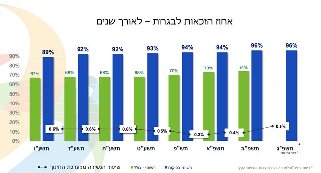 נתוני הבגרות לשנת תשפ"ג מלמדים על מערכת חינוך מצוינת עם 96% הצלחה ו-0.6 אחוזי נשירה בלבד. מדובר בהישג מצוין למוסדות המפוקחים ע"י משרד החינוך ועל יציבות מרשימה בהישגי התלמידים. 16% מהתלמידים זכו לתעודת בגרות בהצטיינות לשנת תשפ"ה, עליה נוספת ביחס לשנה קודמת. ראש העיר ציין כי אשדוד מובילה את מחוז דרום באחוזי הבגרות במדעים והיא עומדת מעל הממוצע הארצי. בהקשר לנתוני הבגרות הוא ציין כי למען ההגינות כלפי מנהלי ומורי בתי הספר, יש להציג את שני הגרפים: גרף של ציוני הבגרות ברמה הכוללת וגרף של ציוני הבגרות במוסדות המפוקחים, וביקש מהתקשורת להביא את שניהם לידיעת הציבור. ראש העיר סיים בהודעה כי גם השנה נקלטו מנהלים חדשים למוסדות החינוך, עליהם דיווחנו בהודעה נפרדת. "אנחנו מאמינים בכוחו של מנהל ומנהלת טובים לקדם את מוסדותיהם ולהגשים את יעדי המערכת" אמר.