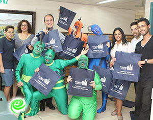 יצורים מוזרים פלשו לבניין העירייה, סיירו במסדרונות ו"פרצו" לתוך המשרדים. היצורים, ירוקים, כתומים וכחולים, לא הגיעו בידיים ריקות. הם הצטיידו בתיקי בד ומסרו אותם לציבור העובדים, לא לפני שהוכיחו את כוחם בחיוך ובלחיצת יד ידידותית. על הפלישה המחויכת אחראית המחלקה לאיכות הסביבה בעיריית אשדוד, ואילו היצורים הם שחקני תיאטרון ברמוזה ותיכונים בעיר.