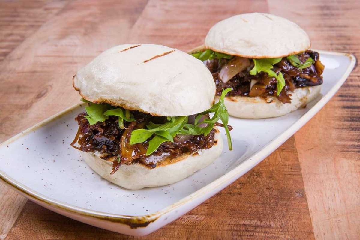 מסעדת אטמוספירה – תגיש באן בקר עם בשר שפינדרה מפורק ברוטב כמהין, המבורגר אטמוספירה ויקיטורי פרגית ושומן – מתובל במרינדת ירוקים.